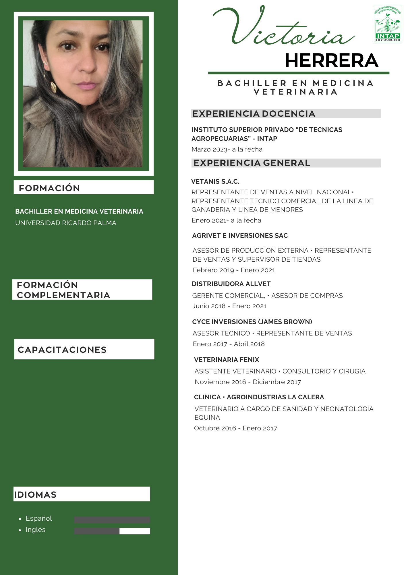 Bachiller en Medicina Veterinaria de la Universidad Ricardo Palma. Docente del Instituto Superior Privado – INTAP. Representante Técnico Comercial de la línea de ganadería y línea de Menores – Vetanis S.A.C. Asesor de producción Externa Agrivet e Inversiones S.A.C.